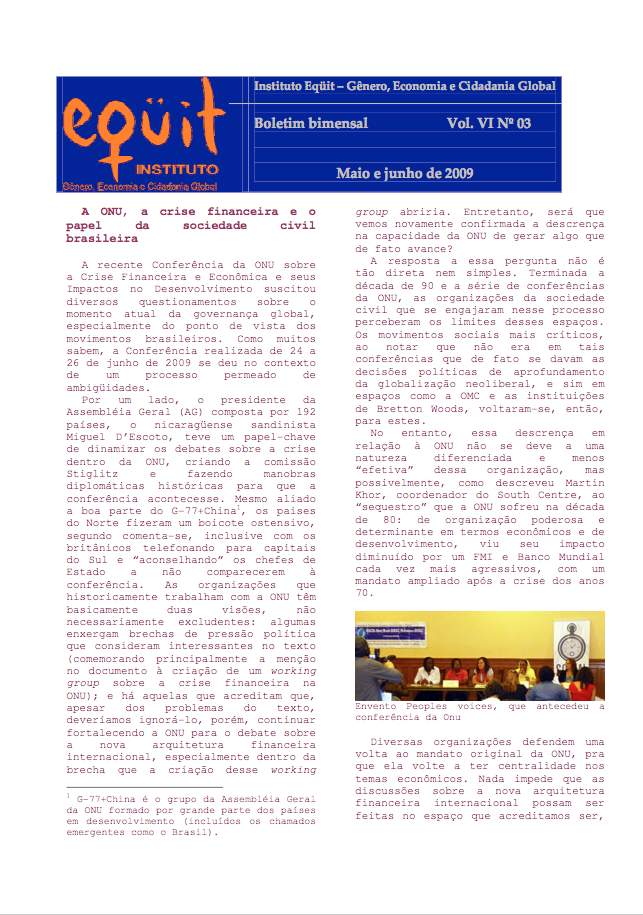 A ONU, a crise financeira e o papel da sociedade civil brasileira A recente Conferência da ONU sobre a Crise Financeira e Econômica e seus