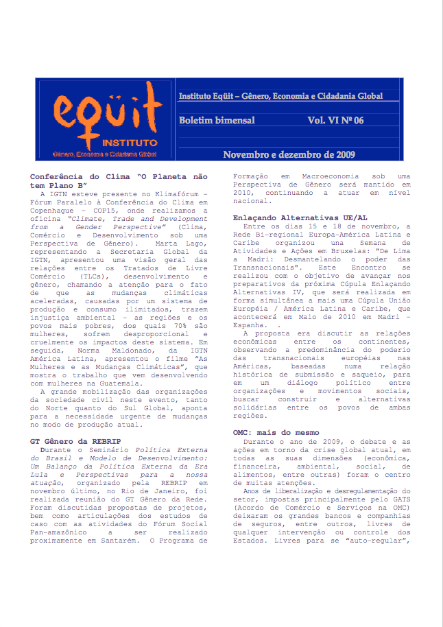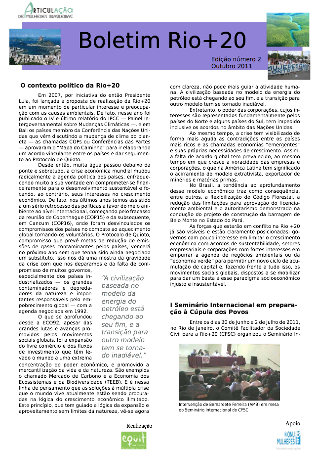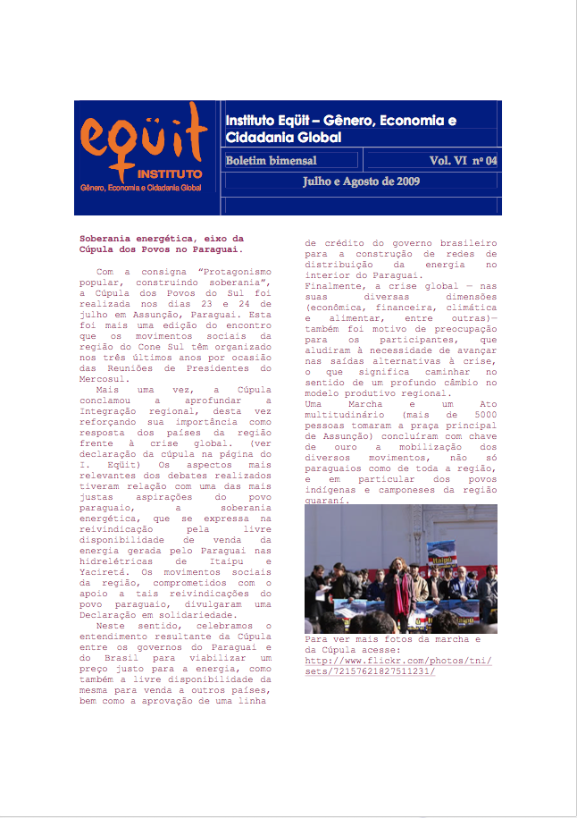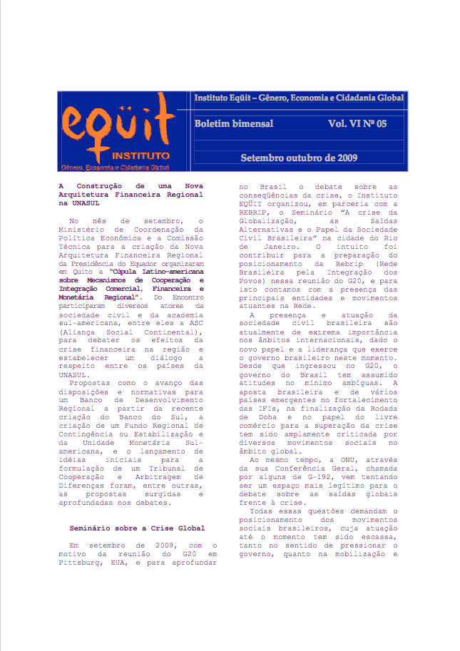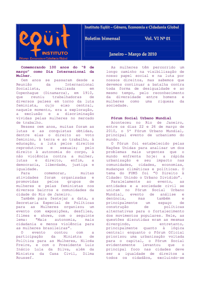 Fórum de mulheres do IBAS O Instituto Eqüit tem buscado monitorar o Fórum de Diálogos IBAS – Índia, Brasil e África do Sul -, dada