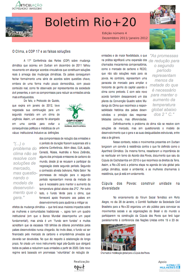 O Clima, a COP 17 e as falsas soluções A 17ª Conferência das Partes (COP) sobre mudança climática que ocorreu em Durban em dezembro de