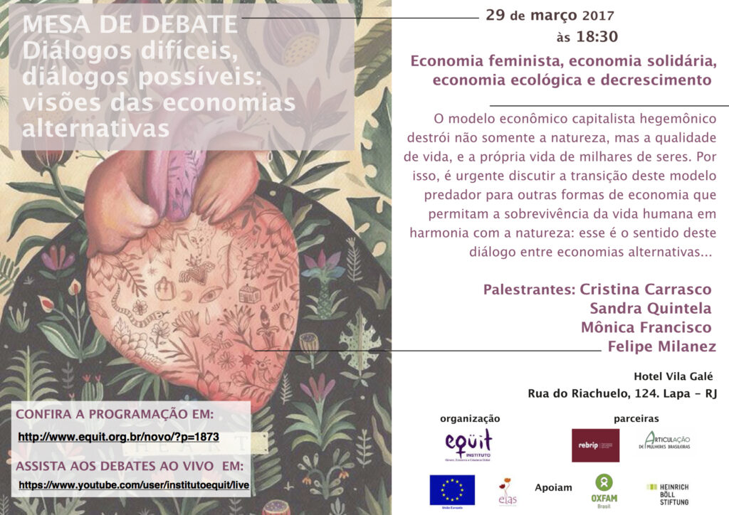 Diálogos difíceis, diálogos possíveis: visões das economias alternativas – Economia Feminista, economia solidária, economia ecológica e decrescimento O I. Eqüit convida para Debate no próximo dia 29 de março, às